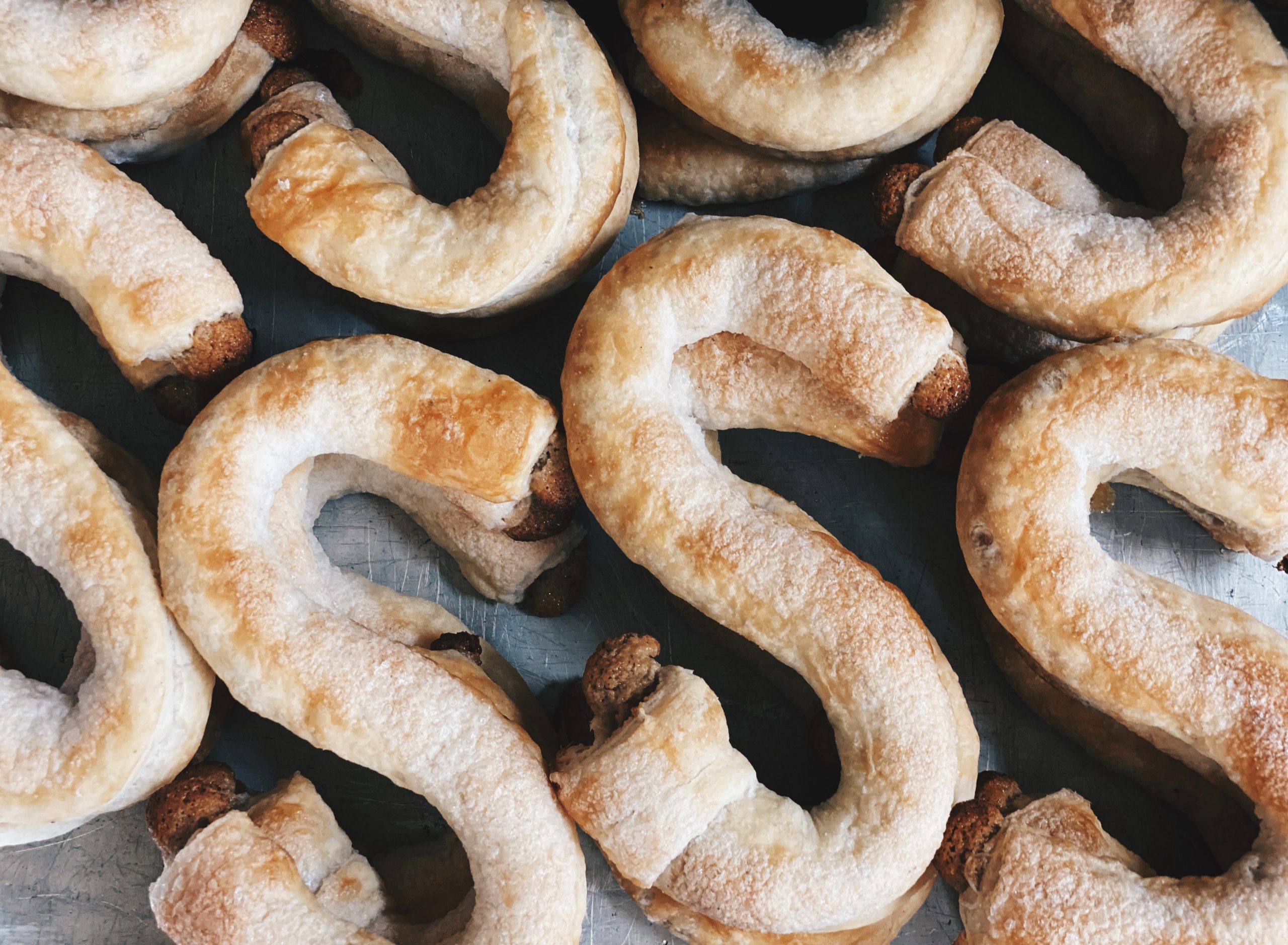These Dutch Letters are what Jaarsma’s Bakery is best known for. It is almond paste filling wrapped by a puff pastry dough all topped with a light sugar coating shaped into an “S” for Sinterklaas. Order by the 2 pack.